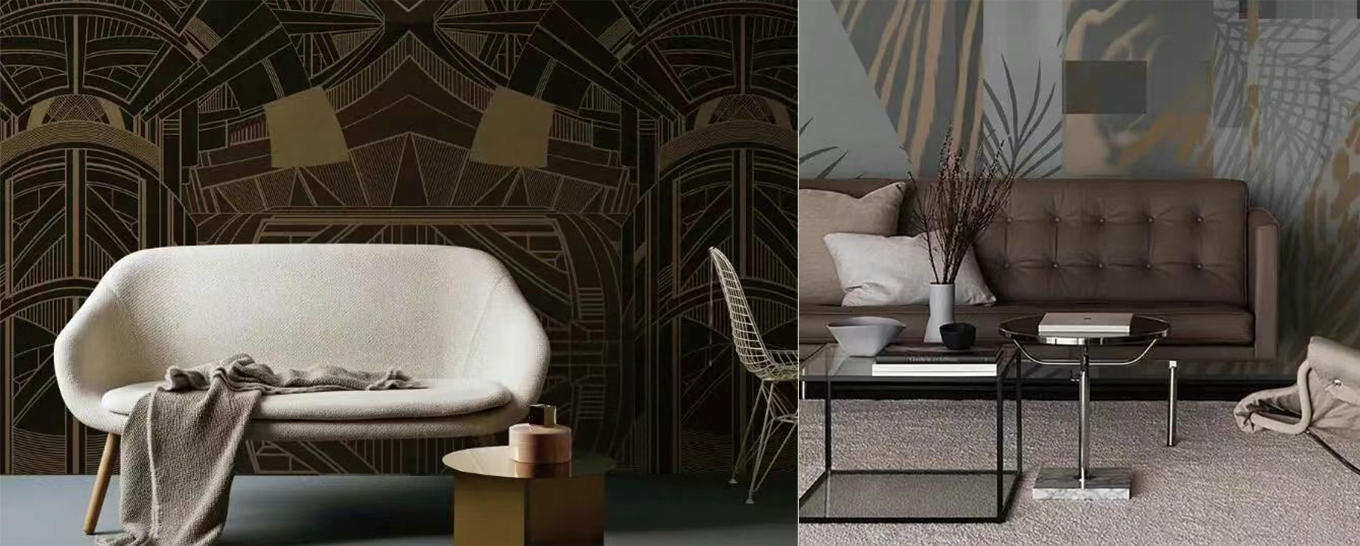 金箔、復合絲、粒子、草編、紙編、絨面等豐富的面材,通過精細復合制作工藝,使產品呈現出無與倫比的裝飾效果。