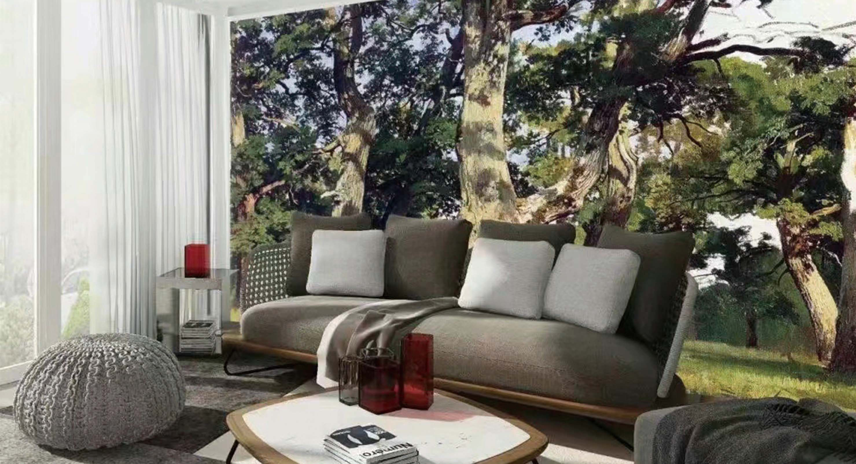 近萬種素材圖庫、百余種基材、進口環保噴繪墨 精細電腦噴繪+3D打印技術、量尺定制,為客戶提供高端私定般貼心服務。 立體半透打印—底材和工藝剛結合,表達“近實遠虛”“外實內虛”的繪畫構圖手法。