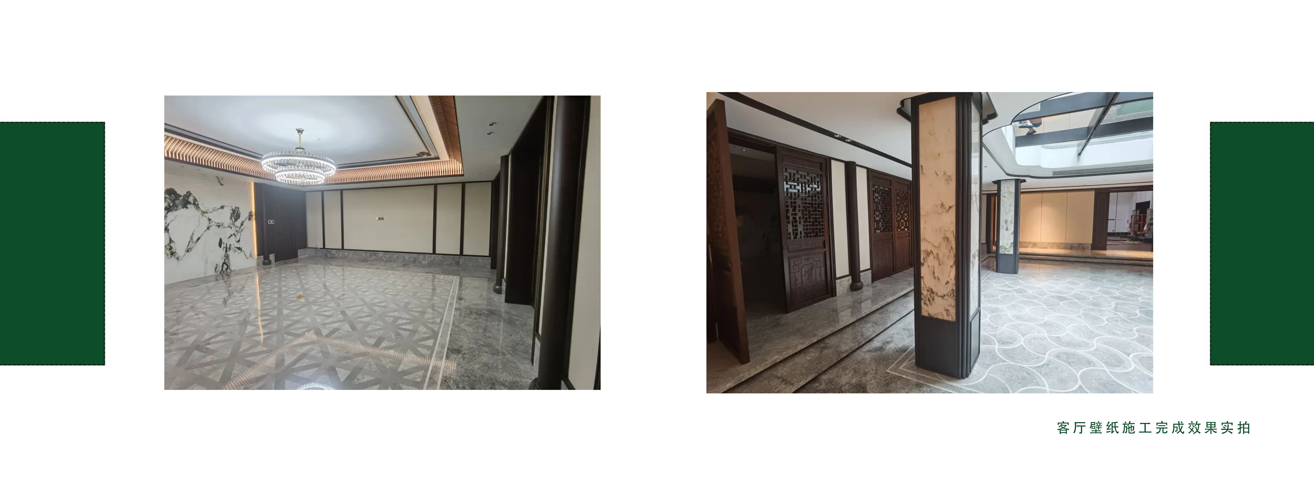 觀唐花園?中式宅院項目,傳承中國古典風韻,借鑒中國傳統園林的手法和意境,吸收傳統園林的詩情畫意,充分體現中國景觀藝術“小中見大”的意境,可謂是“移天縮地入君懷”。該項目主要選用了特普麗無紡紙墻紙、定制壁畫,每棟別墅使用無紡紙墻紙約1500平米、定制壁畫11幅。